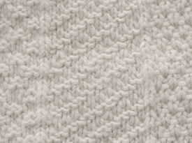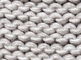 全ての段で表編みまたは裏編みを繰り返すことで、柔らかく、伸縮性があり、リバーシブルな模様を表現。