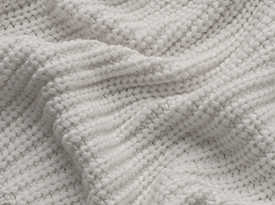 正方形の格子模様が特徴的で、厚みと立体感があり、空気をため込む構造で保温性に優れている。