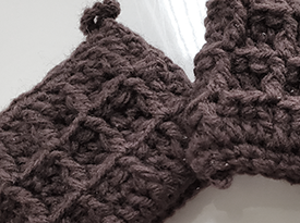 凹凸のある模様で、編み地が立体的に仕上がり、強度がありながらも柔らかい印象。